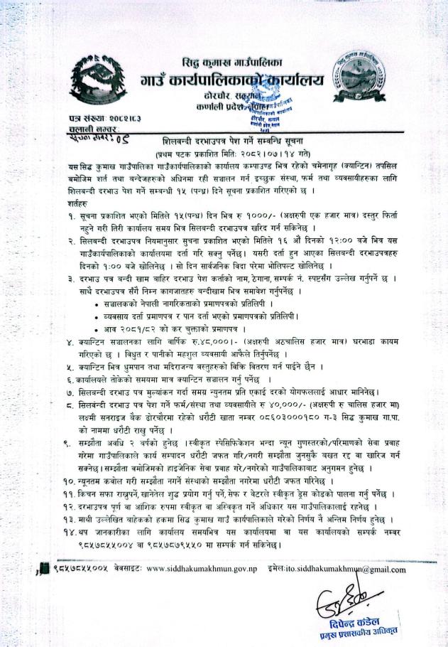 Invitation for Bids (ढोरचौर-फलाटे सडक स्तरोन्नती तथा कालोपत्रे आयोजना ठेक्का सम्वन्धी सूचना )