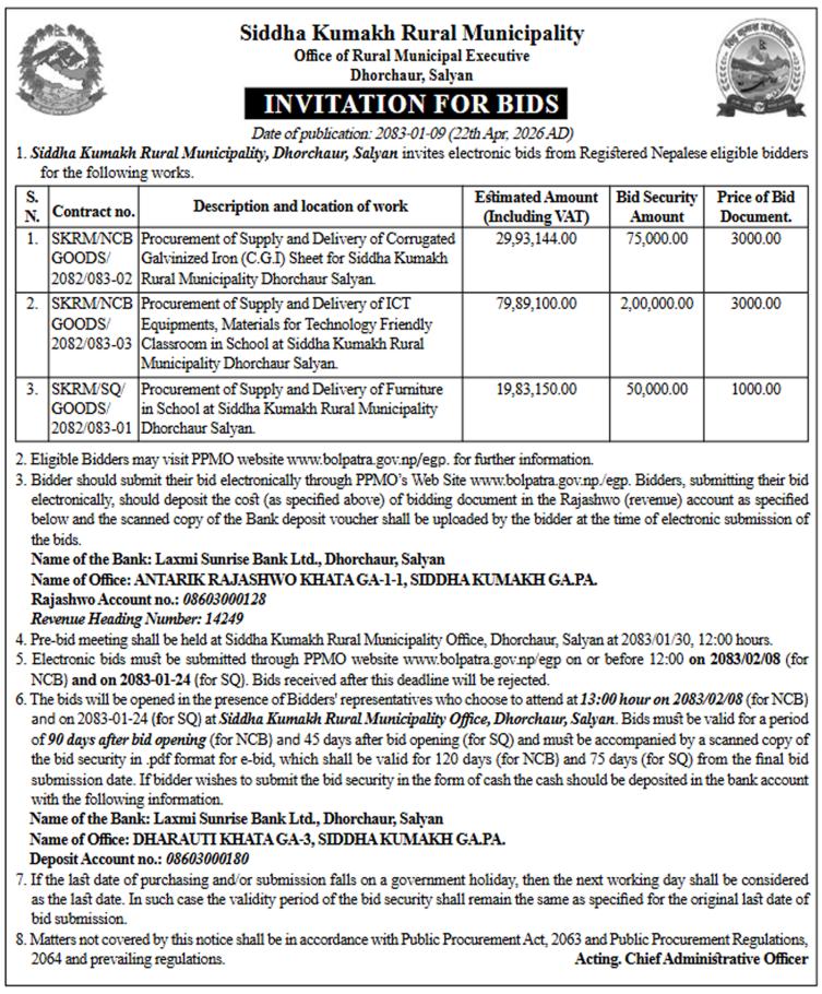 सार्वजनिक खरिद/बोलपत्र सूचना