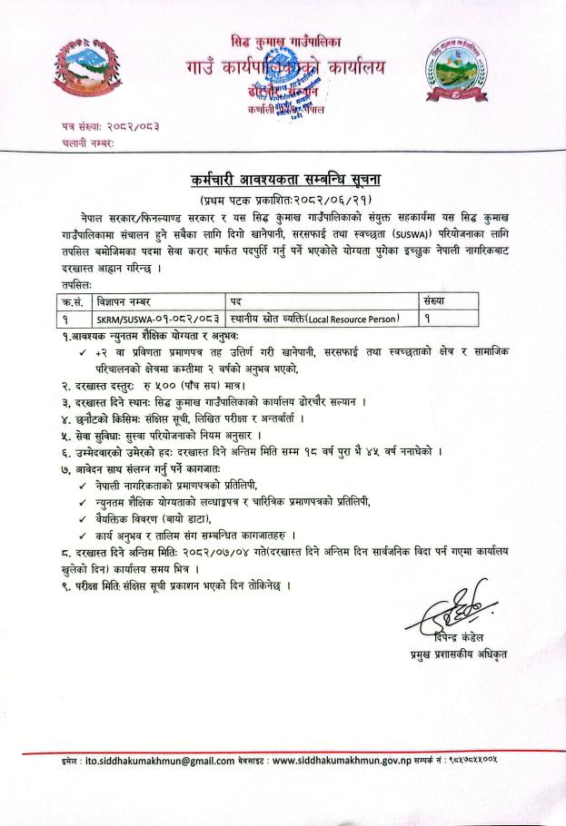 कर्मचारी आवश्यकता सम्बन्धि सूचना