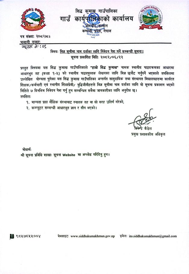 विज्ञ सूचीमा नामदर्ताको लागि निवेदन पेश गर्ने सम्बन्धी सूचना ।