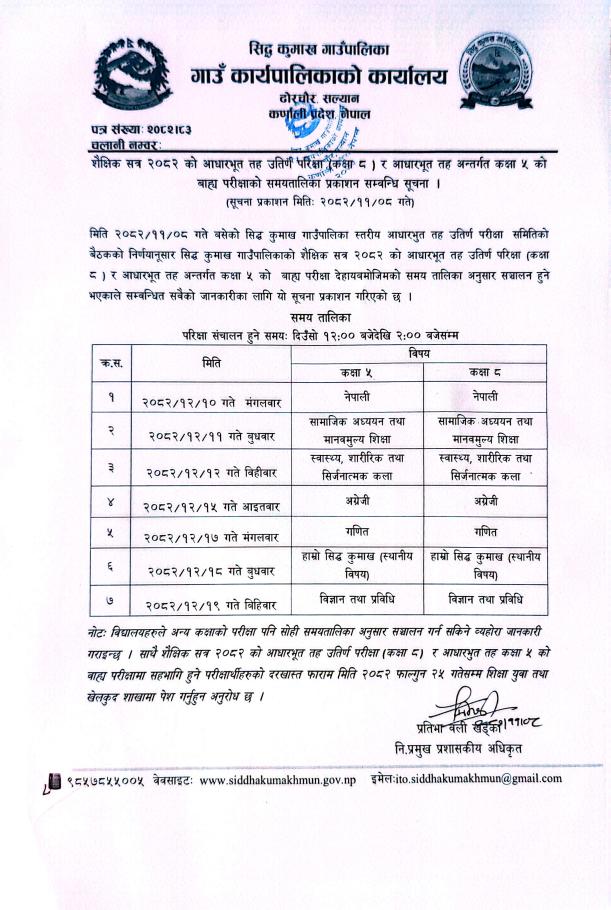 आधारभूत तह उत्तीर्ण परीक्षा (कक्षा ८) र आधारभूत तह कक्षा ५ को परीक्षा समय तालिका प्रकाशन सम्बन्धि सूचना