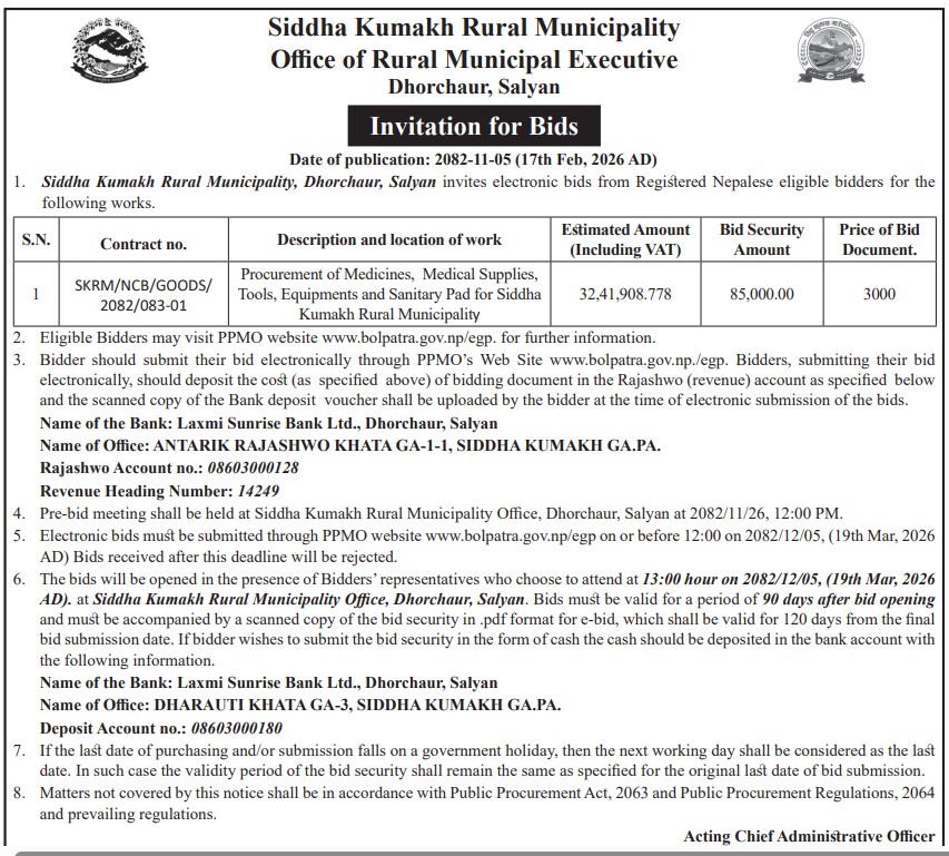 सार्वजनिक खरिद/बोलपत्र सूचना